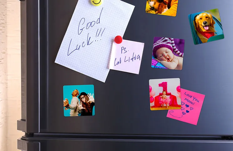 Individuelle quadratische Magnete sind eine stilvolle und praktische Möglichkeit, Ihr Zuhause oder Ihr Büro zu personalisieren. Unsere vielseitigen quadratischen Kühlschrankmagnete eignen sich perfekt zum Anbringen von Fotos, Notizen und Kunstwerken auf jeder magnetischen Oberfläche. Entdecken Sie, wie unsere Foto-Kühlschrankmagnete Ihre Einrichtung verschönern und Ihnen helfen, Ordnung zu halten.