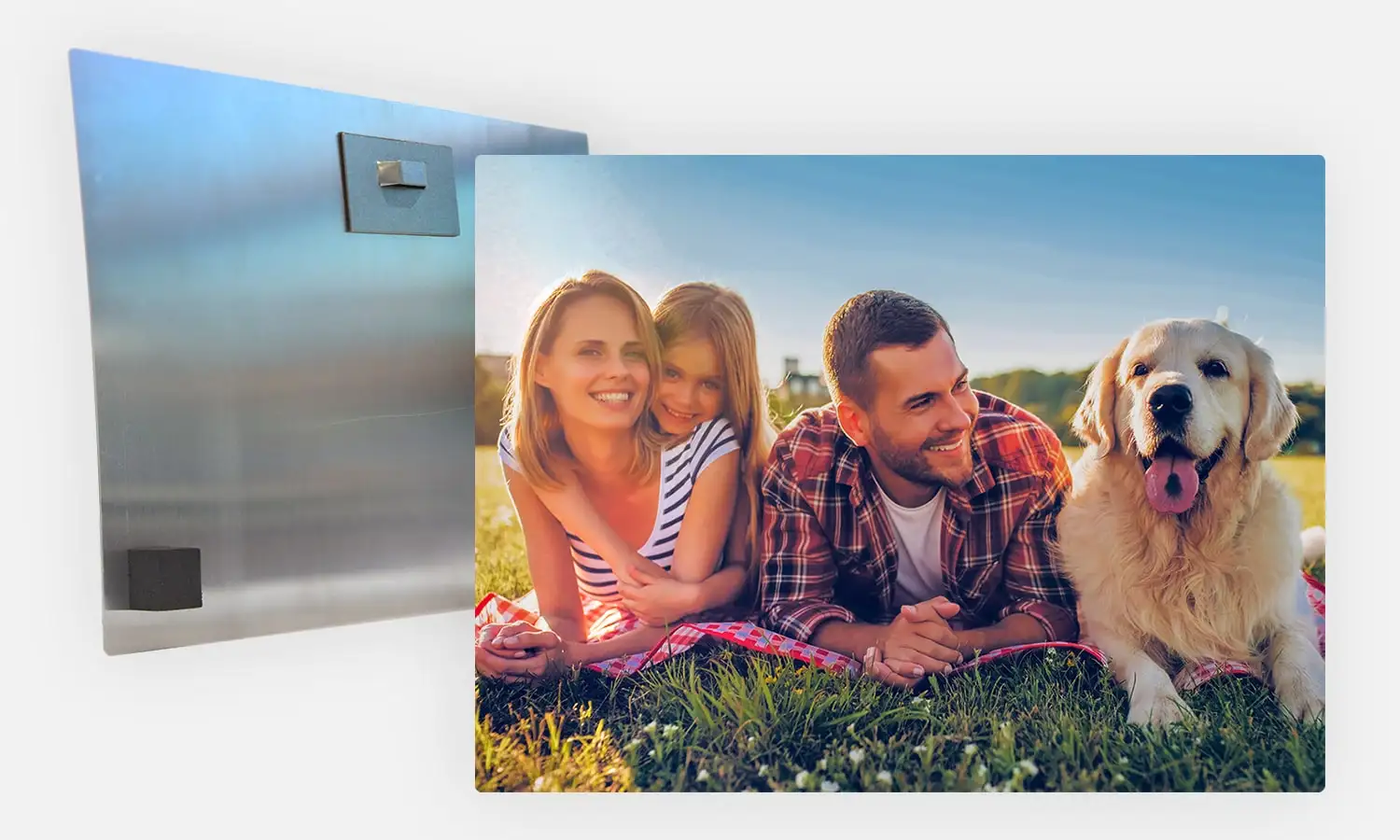 Wir fertigen Ihren Metalldruck mit modernsten Druckverfahren auf robustem Aluminium an.