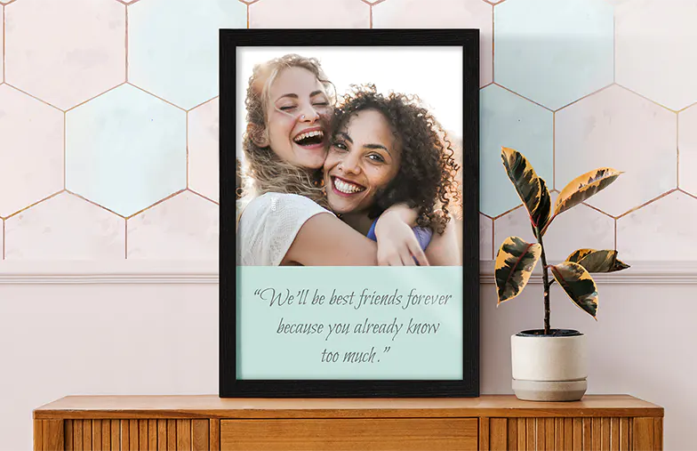 Personalisieren Sie jedes Detail Ihres gerahmten Fotodrucks. Spielen Sie mit Größen, Layouts und Designs – fügen Sie sogar Text und Illustrationen hinzu.