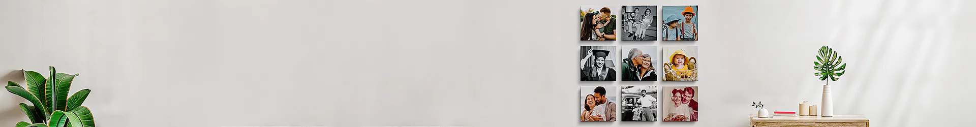 Unsere Fotomosaik-Leinwanddrucke bieten eine Reihe von Stilen und Größen für jeden Geschmack. Wählen Sie zwischen unseren 4-teiligen (25,4 x 25,4 cm), 6-teiligen (25,4 x 25,4 cm) oder 9-teiligen (25,4 x 25,4 cm, 30,5 x 30,5 cm, 40,6 x 40,6 cm und 50,8 x 50,8 cm) Mosaik-Leinwanddrucken.